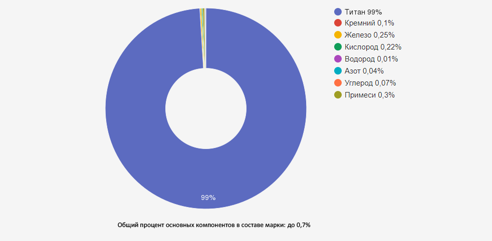 | Титан (Ti) | 99,24-99,7 | Основа сплава |